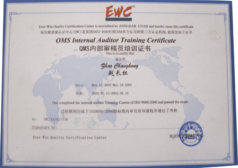 QMS內(nèi)部審核員培訓(xùn)證書(shū)